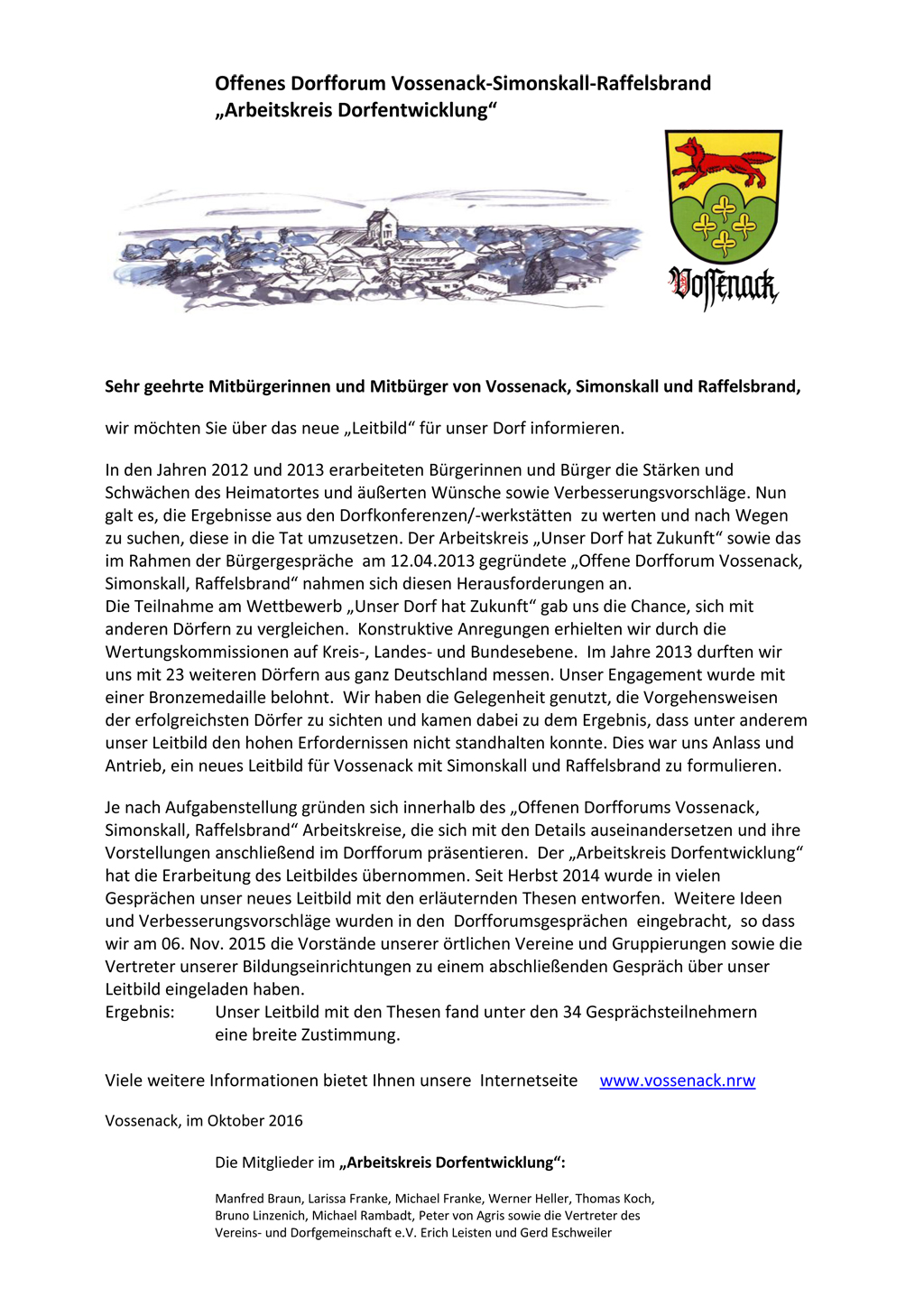 Da die Hofarbeiter ein sicheres Einkommen besaßen, konnten sie sich erlauben, ein Haus für sich und ihre Familien zu bauen. Da der Hof in seiner Nähe eigenes Land hatte, konnten sie es nur in einem gewissen Abstand vom Hof erstellen. Sie errichteten es meist in Richtung der heutigen Kirche. Dadurch entstand mit der Zeit ein Dorf, das den Namen ihres Arbeitgeber, nämlich „Vossenack" erhielt.